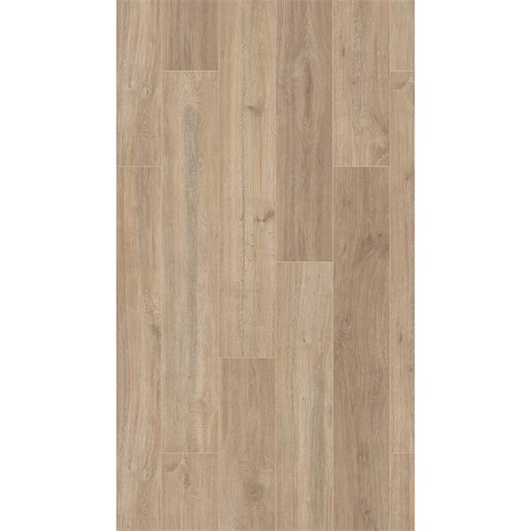 - Slide the long edge of the board into place and use a downward action and push the tongue of the second panel down into the first panel’s groove. Listen for the click to make sure the boards are connected.