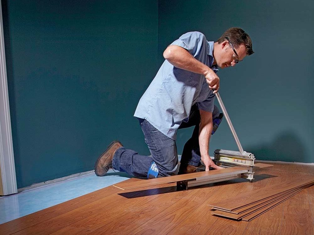- Once the flooring is laid, the last finishing touch is to add a laminate flooring trim. Measure and mark with a pencil on the length of laminate flooring trim where the cut needs to be made. Use scotia cutters to cut the corners to a 45° angle. Alternatively, use a mitre saw or tenon saw and mitre block.